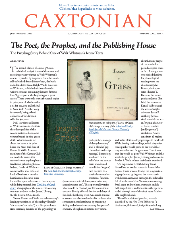 Visit our website www.caxtonclub.org to find out more about Caxton Club current activities and to read the latest edition of the Caxtonian.